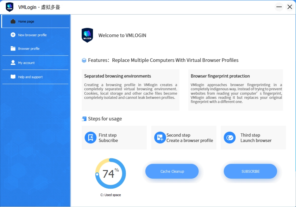 Загрузка VMLogin представляет собой стиль, который, похоже, застрял в 2010-х годах. Пользовательский интерфейс вряд ли интуитивно понятен, поскольку основной интерфейс приложения содержит всевозможную информацию о преимуществах технологии, процессе использования браузера и кнопке очистки кэша, что заставляет людей чувствовать себя сбитыми с толку и неуверенными в том, с чего начать. . После запуска VMLogin запускается в окне фиксированного размера и не может отображаться в полноэкранном режиме, поскольку кнопки развернуть вообще нет (в последующих опытах вы можете использовать функции API для развертывания окна, но мне трудно себе это представить). программное обеспечение в 2024 году было бы настолько громоздким в плане максимизации). Удивительно, но если нажать кнопку «Свернуть», приложение исчезнет с панели задач. , и по умолчанию профиль браузера в VMLogin фактически передает отпечаток вашего реального устройства, а это означает, что его безопасность в большинстве случаев такая же, как у браузера, который вы обычно используете. Если вы хотите использовать VMLogin для безопасного создания нескольких учетных записей, вам необходимо настроить множество параметров вручную. Более того, VMLogin обеспечивает меньшую видимость и контроль над базовыми настройками отпечатков пальцев, чем Bitbrowsers, что, несомненно, является плохой новостью для некоторых пользователей, привыкших к настройке отпечатков пальцев браузера.
