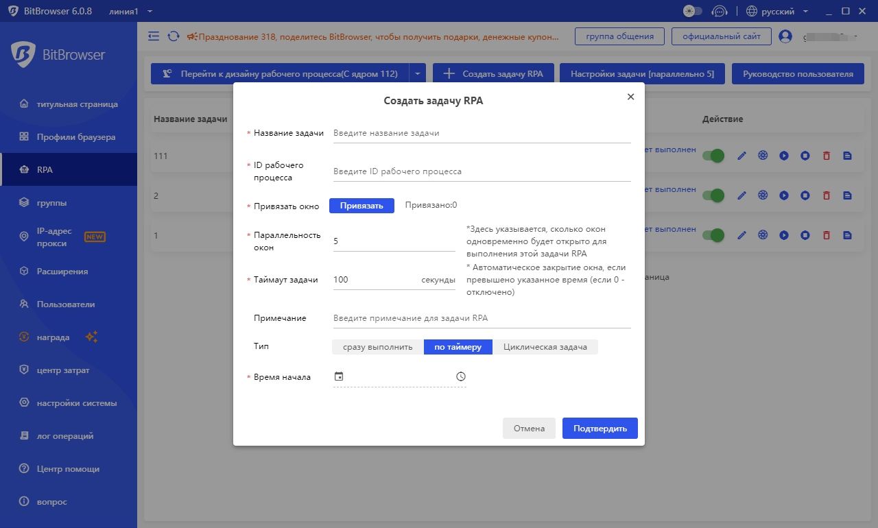 BitBrowser предоставляет всем пользователям (бесплатным и платным) постоянную бесплатную функцию автоматизации (RPA) и функцию группового управления (синхронизатор), предоставляя всем пользователям удобный браузер по отпечаткам пальцев.